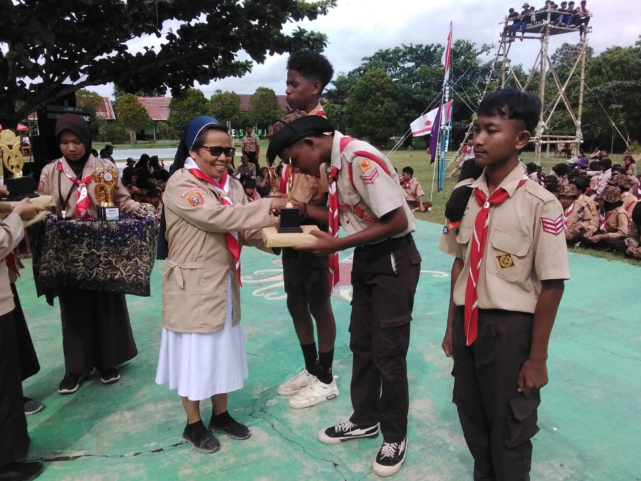 Rama, salah satu anggota Regu Putra, menyampaikan rasa syukurnya atas pencapaian tersebut. "Awalnya saya kaget sih, Pak. Udah ngerasa kek gak ada harapan buat juara umum. Cuma mau bilang terimakasih atas bimbingan dari pelatih pramuka. Lewat mereka kami jadi mempunyai inspirasi dan semangat untuk menjadi pemimpin yang tangguh." (Minggu, 25/2/2024)