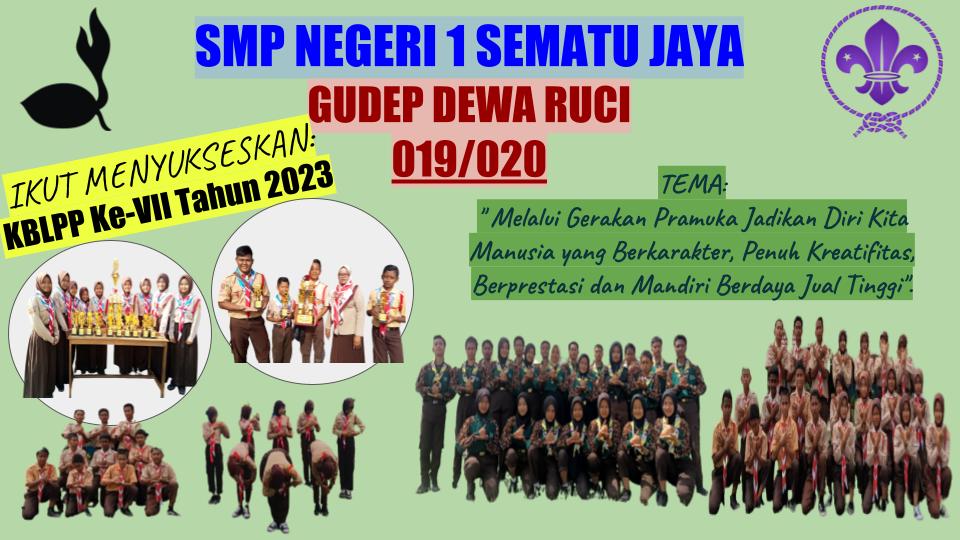 SMPN 1 Sematu Jaya - Kontingen Pramuka dari Gudep 019-020 Dewa Ruci yang berpangkalan di SMPN 1 Sematu Jaya siap untuk memeriahkan ajang prestisius, Kemah Bakti Lomba Prestasi Pramuka (KBLPP) ke-7 di SMAN 1 Sematu Jaya tahun 2023. Kontingen yang terdiri dari 24 siswa terbaik di sekolah ini akan mengikuti sekitar 10 cabang lomba, di mana persiapannya telah dilakukan dengan intensif. Dalam ajang KBLPP ke-7 ini, kontingen pramuka SMPN 1 Sematu Jaya mengusung moto "Berprestasi dengan Sportifitas, Menang dengan Prestasi".