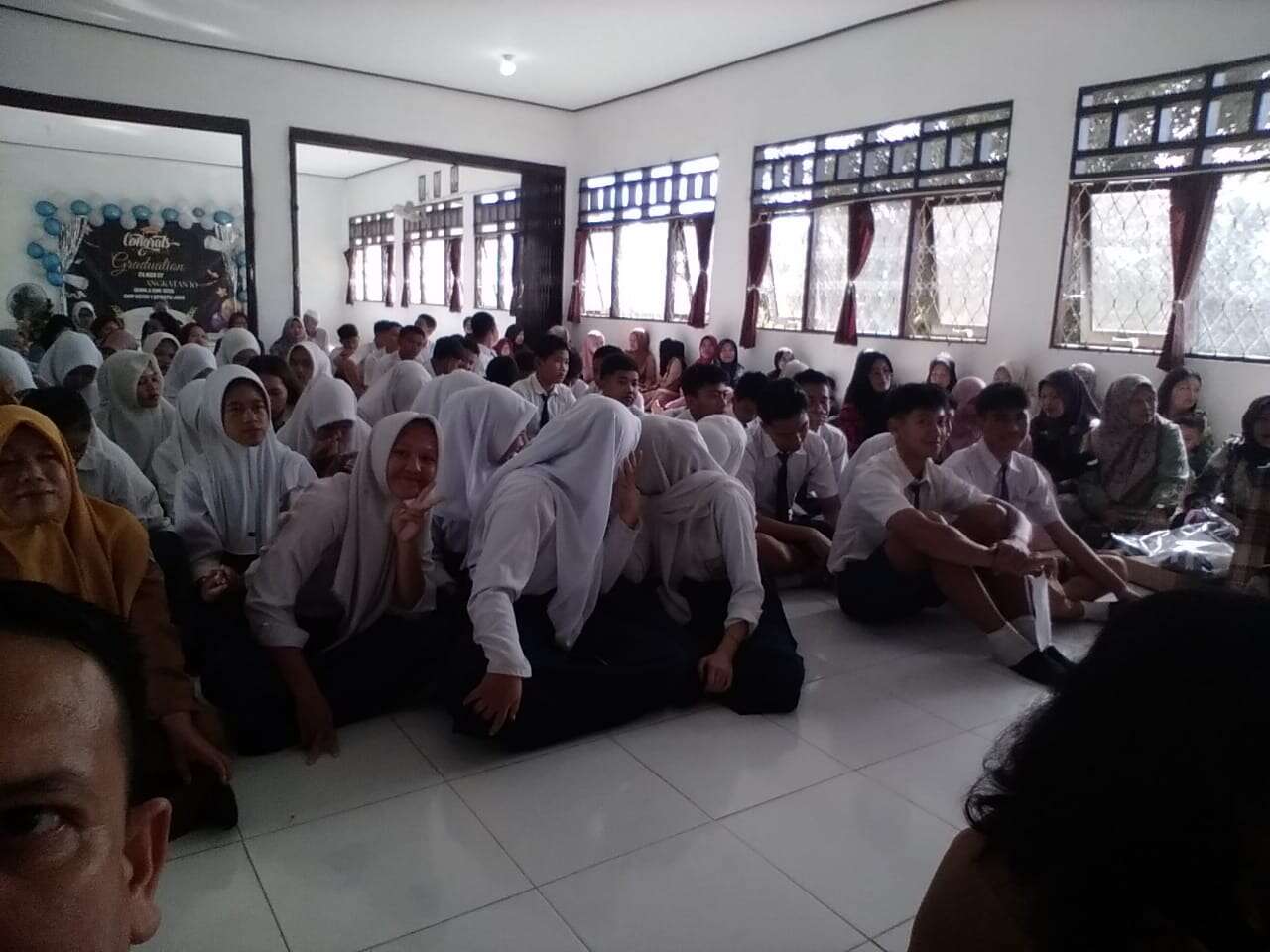 Tanpa kehadiran tamu undangan dari luar, acara ini hanya diikuti oleh siswa kelas 9 beserta orang tua mereka. Kegiatan digelar secara lesehan di aula sekolah tanpa dekorasi khusus—tidak ada panggung mewah atau spanduk besar, hanya layar proyektor sederhana yang menampilkan slide-slide acara. Seluruh konsumsi dibawa secara mandiri oleh masing-masing orang tua siswa, menciptakan suasana kekeluargaan yang akrab dan hangat.