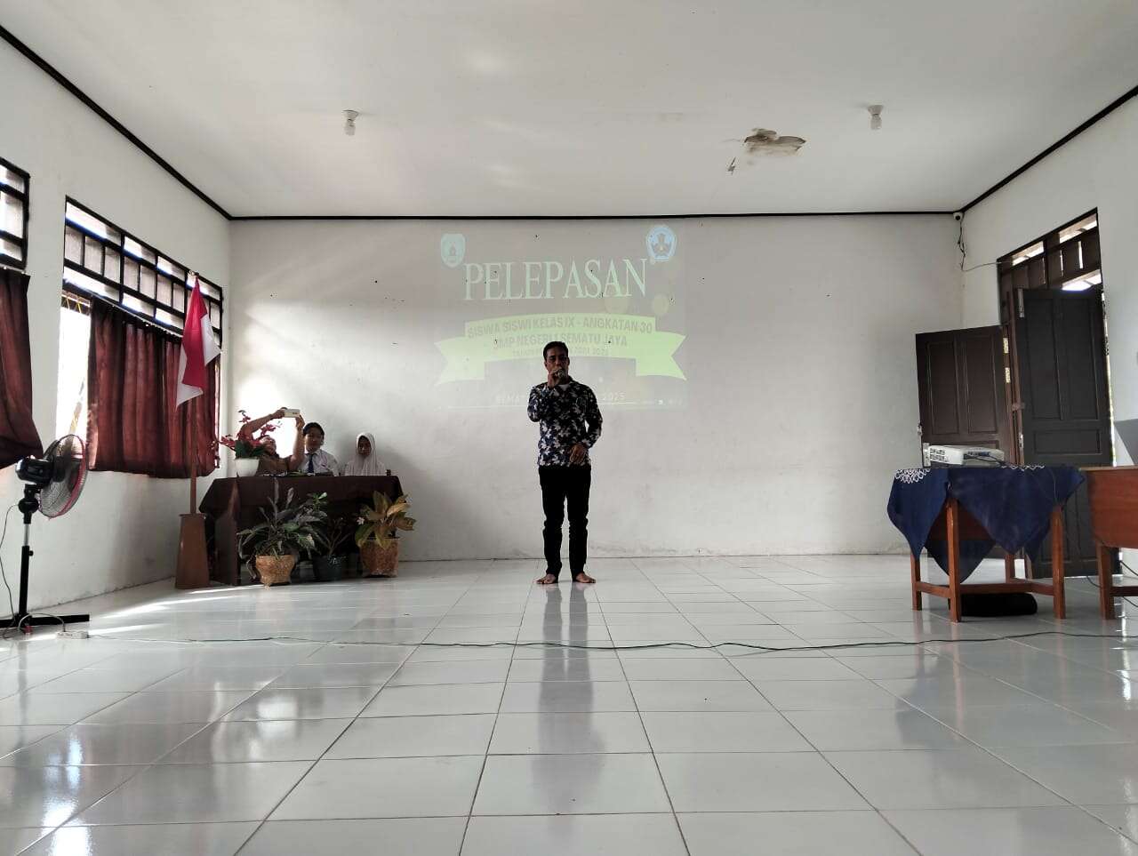 Sematu Jaya, 2 Juni 2025 — Bertempat di aula sekolah, SMP Negeri 1 Sematu Jaya melangsungkan acara perpisahan dan pelepasan siswa kelas 9 Tahun Pelajaran 2024/2025, angkatan ke-30, dengan cara yang sangat sederhana namun penuh makna.