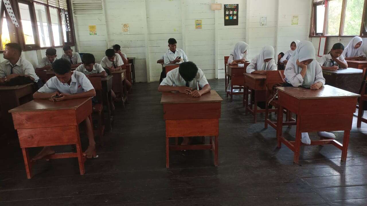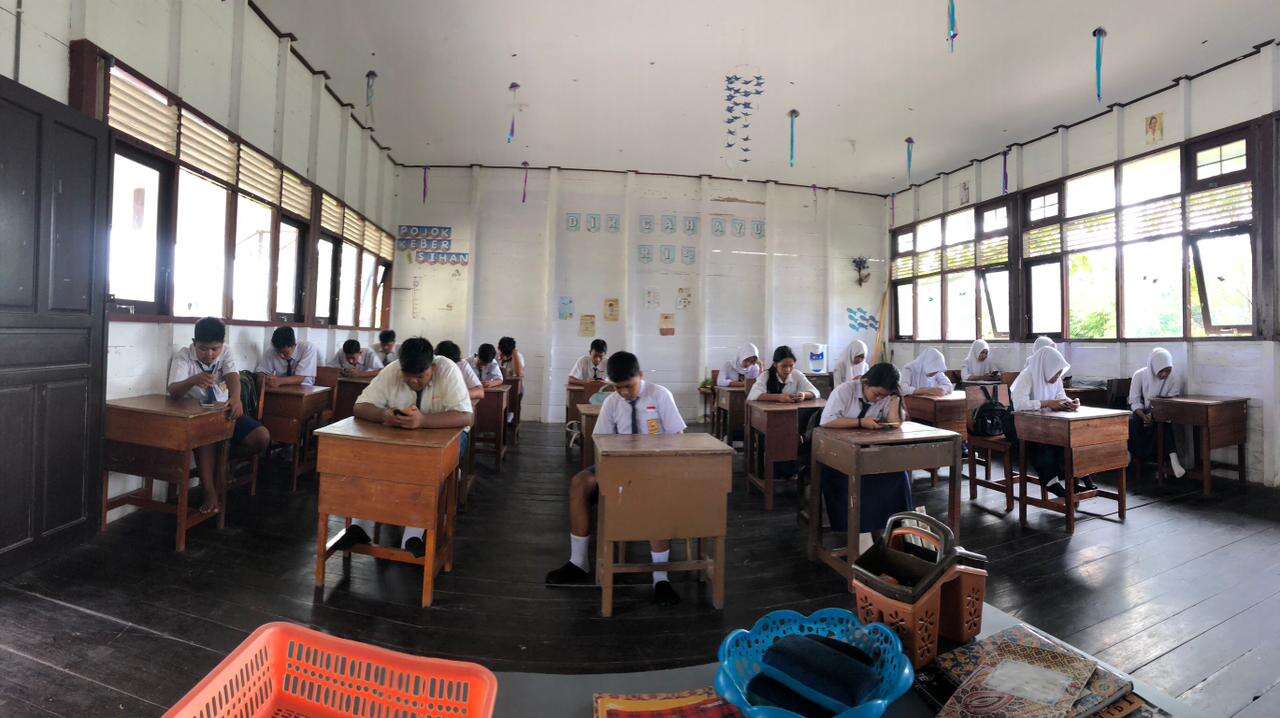 Siswa Kelas 7A sedang mengerjakan soal PTS hari keenam (Sabtu, 7 Oktober 2023)