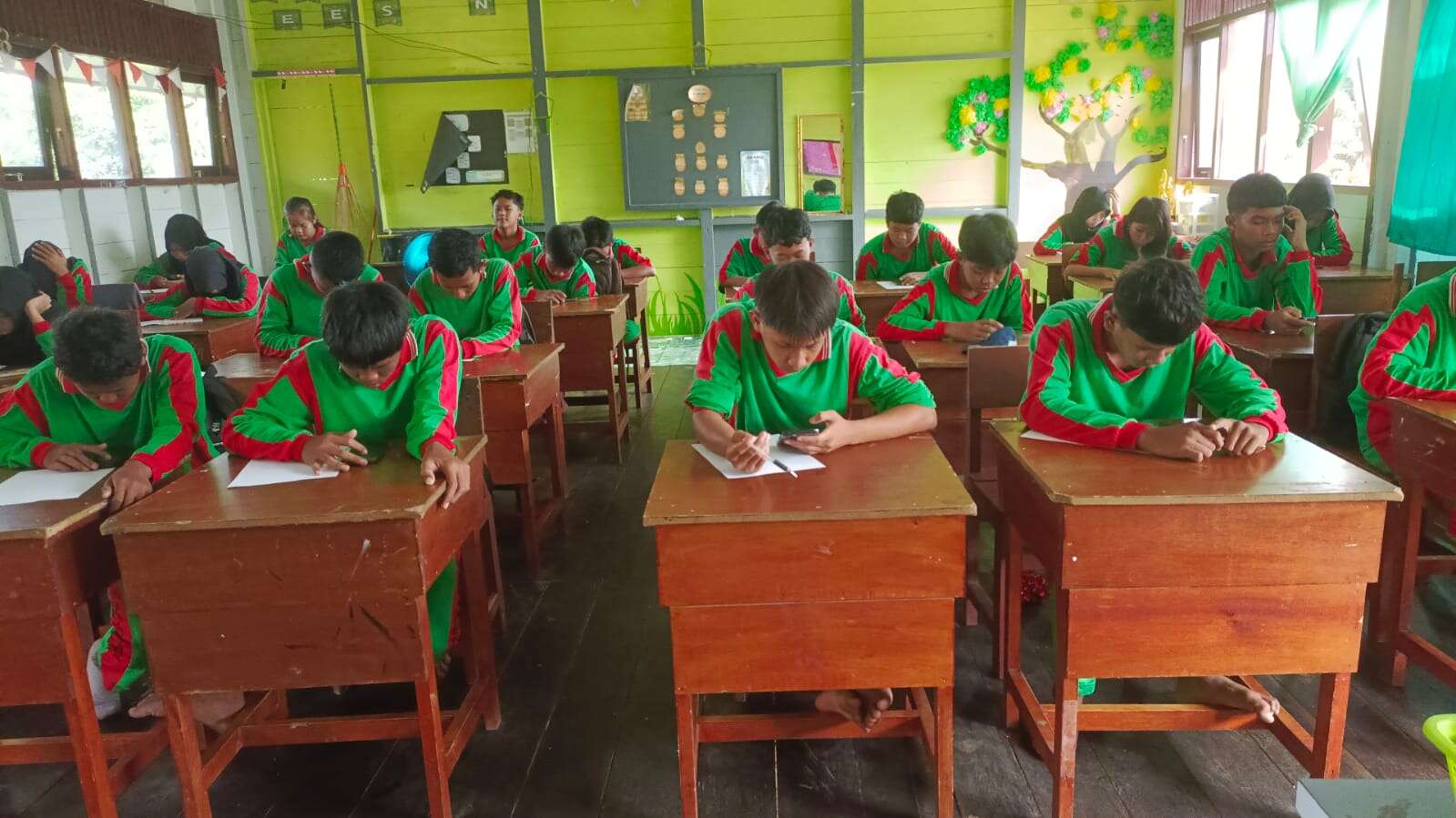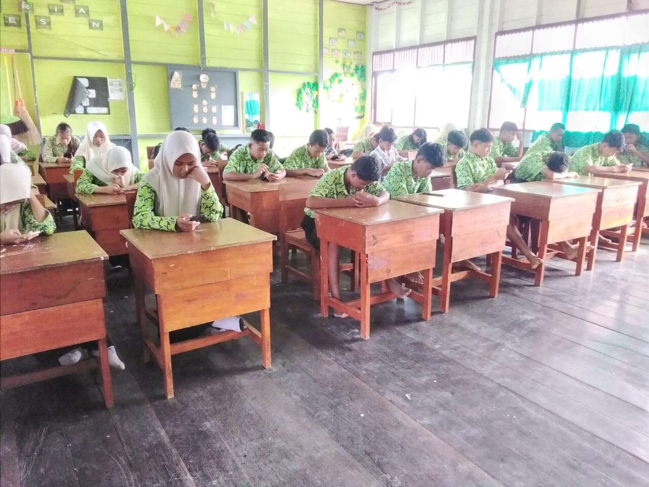 Siswa kelas 9a sedang mengerjakan SAS hari kelima (Jumat, 12 Desember 2025)