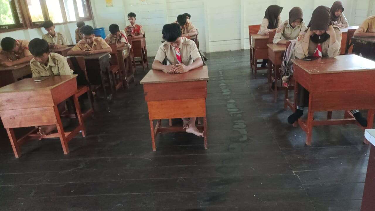 Siswa kelas 9b sedang mengerjakan SAS hari keenam (Sabtu, 13 Desember 2025)